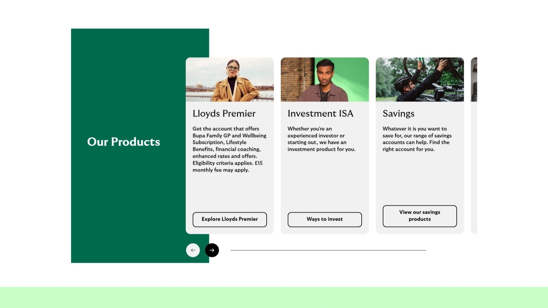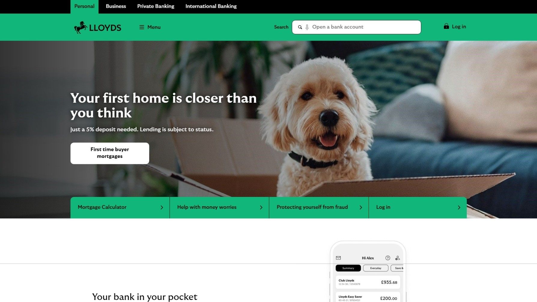 - Interpret the UI/UX design of Lloyds Bank's website (https://www.lloydsbank.com/) into 'vibes'.