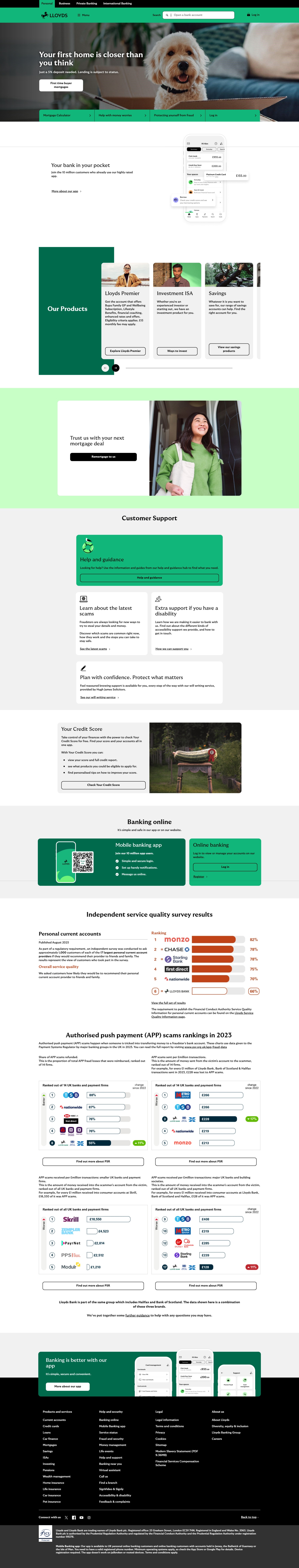- The page includes a "Independent service quality survey results" section near the bottom of the page. Rankings help users determine whether to use a business, just like ratings. And although Lloyds Bank is not in the top five of the ranking, just their presence on what reads as an independent survey of customer satisfaction adds to their perceived legitimacy. It feels like the sort of ranking an established bank would be on, regardless of their actual rank. Of course, it does help that they are number 6 on the ranking, and not at a lower rank.